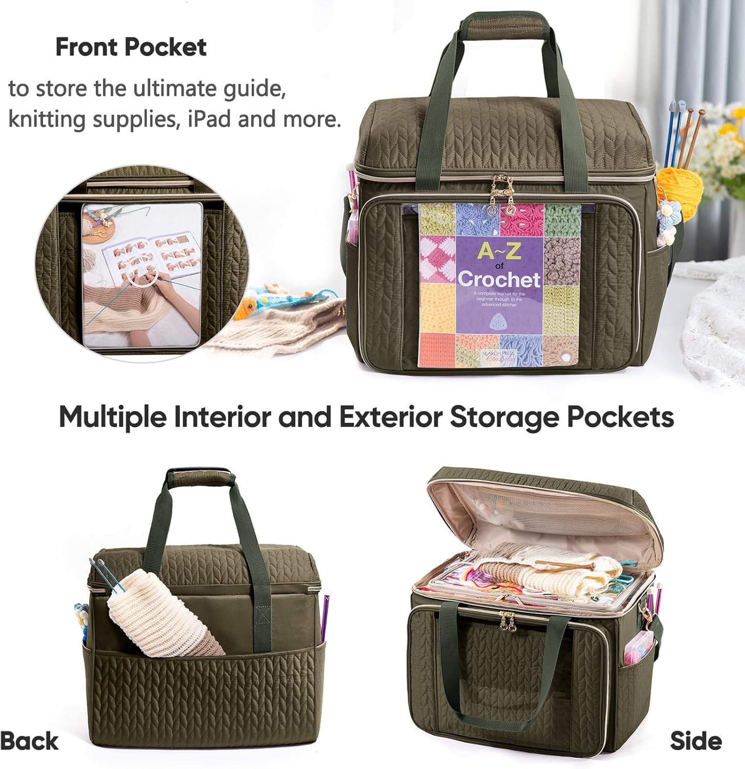 MYBAGZING Crochet Bag Organizer - Yarn Bags for Crocheting - Crochet Storage Bag with Pockets for Crochet Hooks, Crochet Accessories - Yarn Organizers - Yarn Holders for Crocheting - Knitting Bags